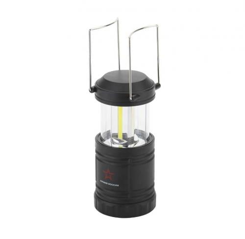 Складной кемпинговый фонарь + премиум COB диоды + 3 диода по 1,5Вт каждый + складной механизм с автоматическим включением + магнит, ушко для подвешивания + 3xAA (не входят в комплект) + картонная коробкаСерия Армия России