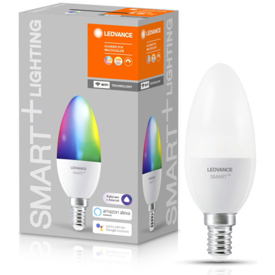 Светодиодная лампа LEDVANCE WiFi Classic B 40 5W RGBW E14 DIM 470Lm 20000h d38x107mm - это инновационная лампа, которая сочетает в себе высокую яркость и энергоэффективность. С помощью технологии WiFi вы сможете управлять цветовой температурой и яркостью лампы прямо с вашего смартфона. Лампа оснащена функцией диммирования, что позволяет создавать уютное освещение в помещении. Срок службы данной лампы составляет 20000 часов, что делает ее долговечным и надежным источником света. Ее компактные размеры (диаметр 38 мм, высота 107 мм) позволяют установить ее практически в любом типе светильника.