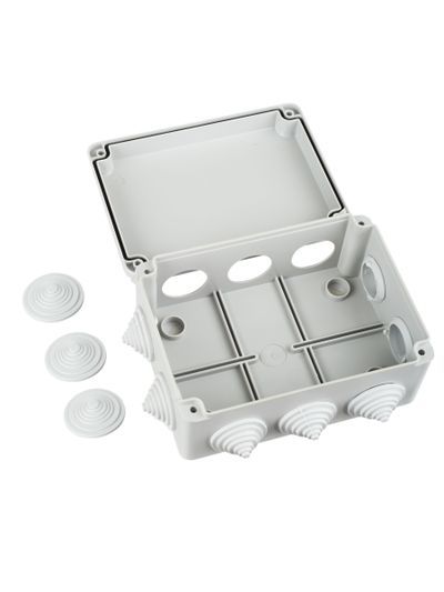 В нашем магазине «Главэлектрика» в Москве, вы можете приобрести товар: «Коробка распаячная КМ41242 для открытой проводки безгалогенная (HF) 150х110х70мм IP55 10 гермовводов серая IEK» с доставкой по г. Москва.
