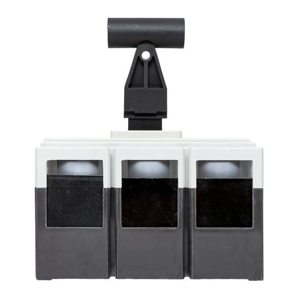 Выключатель ВА-99М выполнен в виде моноблока и состоит из основания и крышки с фальшпанелью, в которой имеется окно для рукоятки управления и толкатель кнопки «Тест» - проверки механизма отключения выключателя. Основание выполнено из термостойкой пластмассы, не поддерживающей горение и являющейся несущей конструкцией для присоединительных зажимов, неподвижных и подвижных контактов с системой дугогашения, механизма управления, блока защиты от сверхтоков. Крышка закрывает все подвижные элементы механизма управления и внутренние токоведущие части.