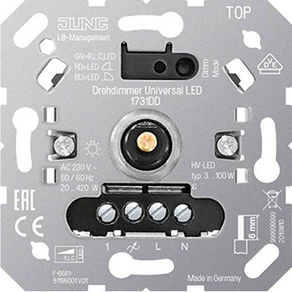 Светорегулятор Jung Jung Механизмы - это высококачественное устройство для регулирования освещения в помещении. С его помощью можно легко контролировать яркость света, создавая комфортные условия для работы или отдыха. Максимальная мощность составляет 420 Вт, что позволяет управлять как обычными лампами, так и энергосберегающими и светодиодными источниками света. Механизмы для скрытого монтажа обеспечивают эстетичный внешний вид и удобство использования. Модель 1731DD отличается надежностью и долгим сроком службы, что делает ее идеальным выбором для любого интерьера.