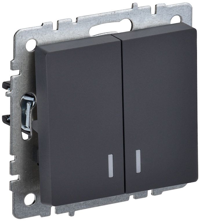 В нашем магазине «Главэлектрика» в Москве, вы можете приобрести товар: «BRITE Выключатель 2-клавишный с индикацией 10А ВС10-2-1-БрГ графит IEK» с доставкой по г. Москва.