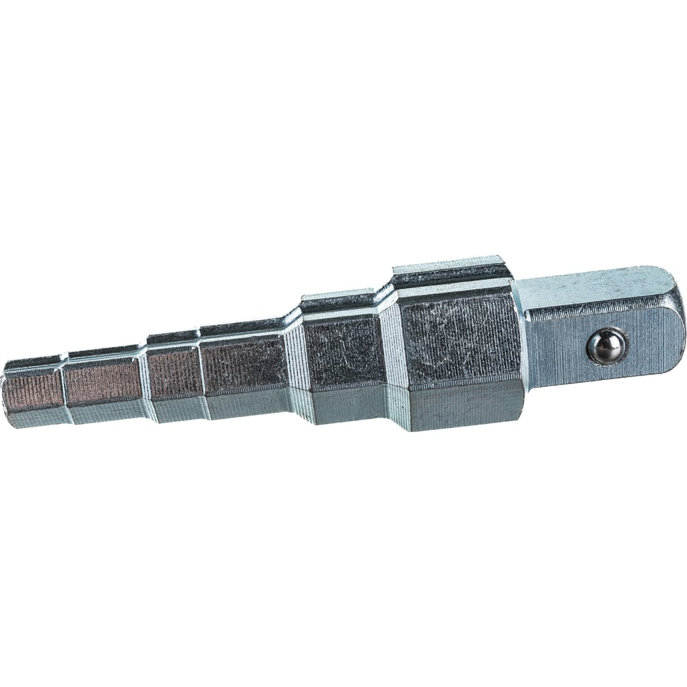 Ступенчатый радиаторный ключ с 6 размерами Icomar 00810.1 подходит для монтажа радиаторных ниппелей и подобных сантехнических приспособлений. Изделие изготовлено из хромованадиевой закаленной никелированной стали. Ключ подходит для работы с 6 размерами - 3/8"- 1/2"-3/4"-1" (8.9-9.6-11.6-12.3-16.4-21мм).