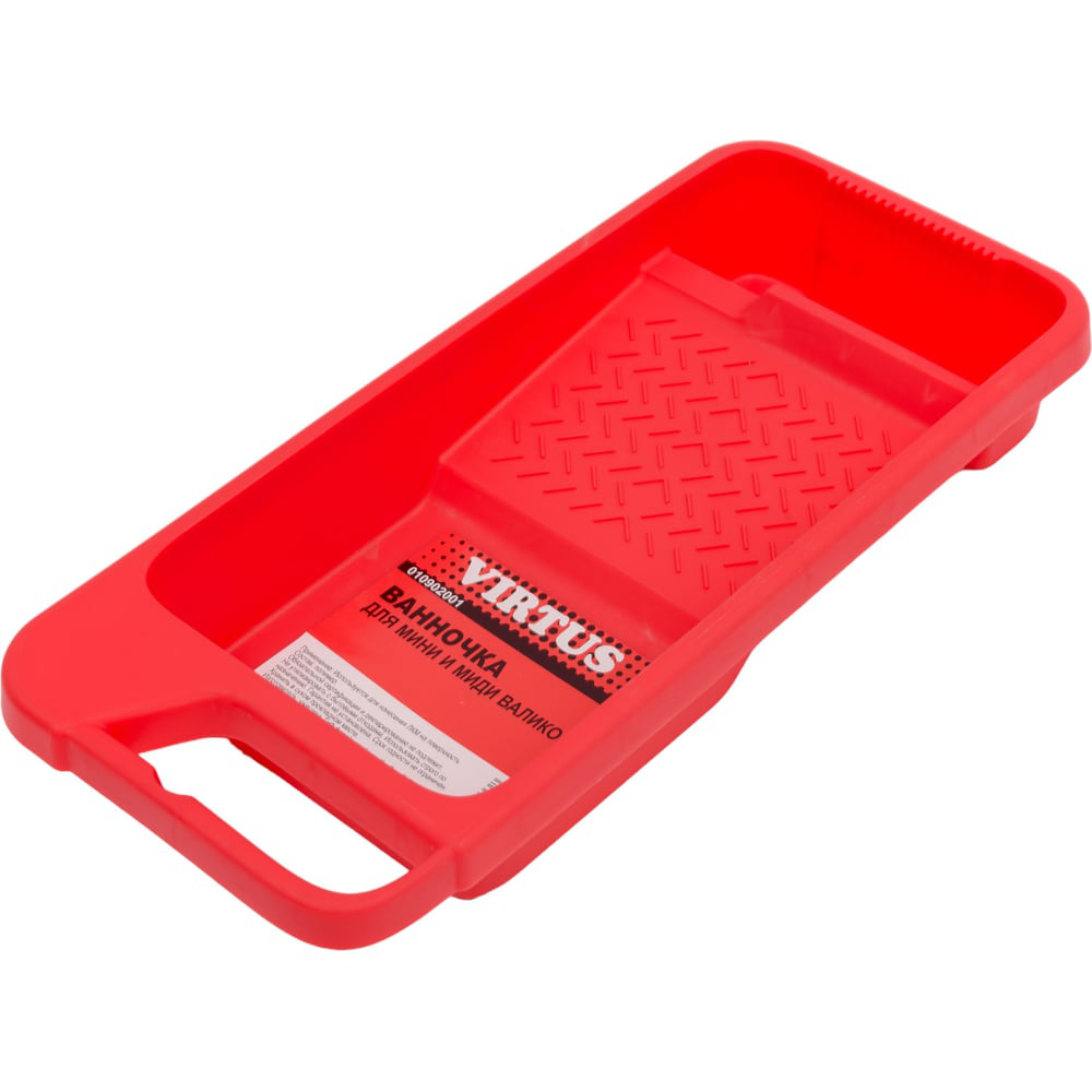 Ванночка для мини- и миди-валиков VIRTUS 010902001 применяется для набора и равномерного распределения лакокрасочного материала по поверхности валика, а также удаления излишков краски во время его прокатки по рифленой плоскости. Изготовлена из высококачественного пластика. Данная модель относится к премиальному сегменту. Для удобной переноски ванночка оснащена рукоятью.