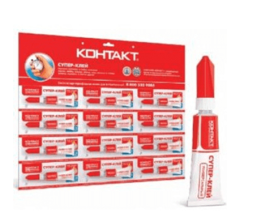 Супер-клей Контакт гель 3 г используется для склеивания следующих материалов: дерево, пробка, пластик, резина, кожа, фарфор, керамика, металл. В состав входит этилцианоакрилат и загуститель. Благодаря своей гелевой консистенции клей можно использовать на вертикальных поверхностях.