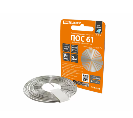 В нашем магазине «Главэлектрика» в Москве, вы можете приобрести товар: «Припой ПОС 61, трубка с канифолью, ГОСТ 21931-76, Ø1 мм, 2 м, спираль, серия "Алмаз" TDM» с доставкой по г. Москва.