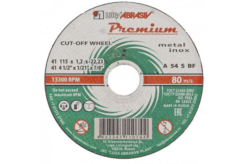 Круг отрезной по металлу+нержавеющей стали диаметром 115 мм, толщиной 1,0 мм и отверстием 22 мм - это высококачественный отрезной диск из премиальной серии от компании Луга (Россия). Этот диск предназначен для профессионального использования при работе с металлом и нержавеющей сталью. Он обладает высокой износостойкостью, точностью и долгим сроком службы, что делает его незаменимым инструментом для резки и обработки металлических изделий.