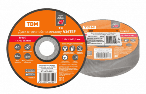 В нашем магазине «Главэлектрика» в Москве, вы можете приобрести товар: «Диск отрезной по металлу 115 х 2,5 х 22,2, тип 41, A36TBF, серия "Рубин", TDM SQ1070-0105» с доставкой по г. Москва.