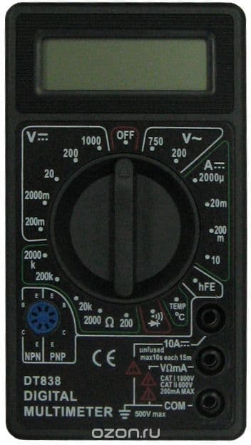 Мультиметр DT 838 61/10/513 - это надежный и универсальный измерительный прибор, который позволяет измерять различные параметры электрических сигналов с высокой точностью. Он обладает широким диапазоном измерений, включая напряжение, ток, сопротивление, ёмкость и частоту. Мультиметр оснащен большим ЖК-дисплеем для удобного отображения результатов измерений, а также имеет функцию автоматического отключения питания для экономии заряда батареи. Благодаря компактному размеру и прочному корпусу, мультиметр DT 838 61/10/513 удобен в использовании как в домашних условиях, так и на производстве.