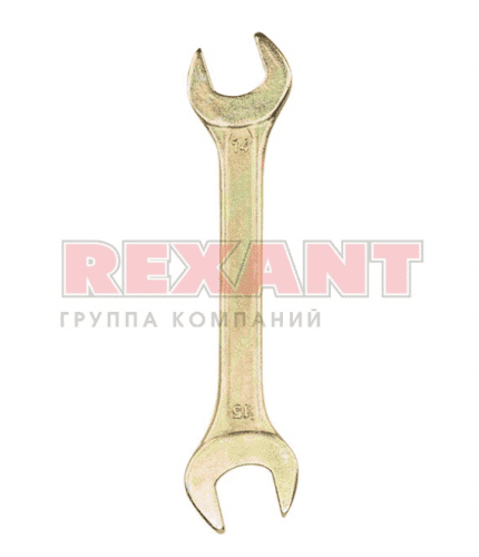 Ключ рожковый REXANT 14х15 мм, желтый цинк - это удобный инструмент для затягивания и откручивания гаек и болтов размером 14х15 мм. Изготовлен из прочного материала с покрытием желтым цинком, что обеспечивает долгий срок службы инструмента и защищает его от коррозии. Удобная форма и эргономичная рукоятка делают работу с ключом комфортной и эффективной. Подходит как для профессионального использования, так и для ремонта и обслуживания дома.