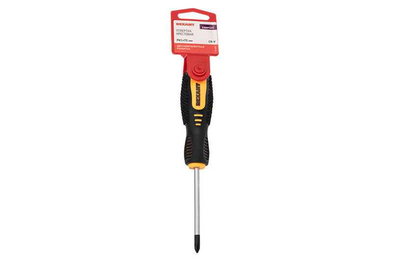 Отвертка крестовая PH 1х75 мм с двухкомпонентной рукояткой REXANT - надежный инструмент для работы с крепежными элементами. Изготовленная из прочного материала отвертка обеспечивает надежный захват и удобство в использовании. Двухкомпонентная рукоятка предотвращает скольжение инструмента во время работы, обеспечивая комфорт и безопасность. Размер PH 1х75 мм идеально подходит для работы с различными видами крепежных элементов. Благодаря качественным материалам и удобному дизайну, данная отвертка станет незаменимым помощником как в профессиональных целях, так и в быту.