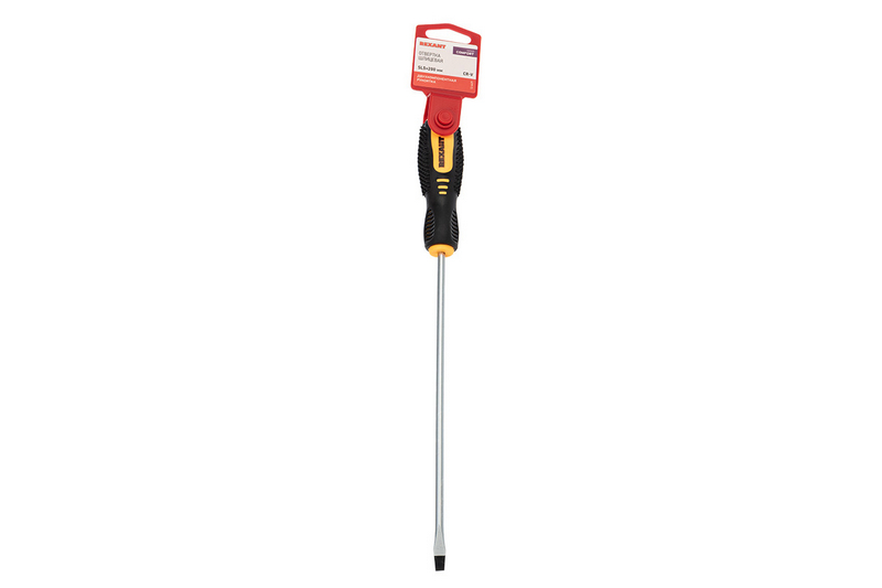 Отвертка шлицевая SL 5х200 мм с двухкомпонентной рукояткой REXANT - надежный инструмент для проведения различных работ по монтажу и ремонту. Изготовлена из высококачественных материалов, что обеспечивает долгий срок службы. Удобная двухкомпонентная рукоятка обеспечивает комфортное и надежное сцепление во время использования. Идеально подходит для работы с винтами и шурупами со шлицевой головкой размером 5х200 мм. Благодаря этой отвертке вы сможете быстро и качественно выполнять любые монтажные и ремонтные работы.