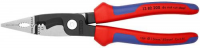 6 функций в одних клещах. Mногофункциональные клещи для электромонтажных работ- для захвата плоского и круглого материала, гибки, удаления заусенцев, резки кабеля, удаления изоляции и опрессовки контактных гильз. Гладкие захватные губки для захвата отдельных жил без их повреждения- профилированные захватные губки и выемка для захвата плоского и круглого материала. Характерная наружная кромка на губке для обработки штепсельных розеток для скрытой проводки и удаления заусенцев на отверстиях для ввода кабеля. Отверстия для удаления изоляции с проводов 0,75 - 1,5 мм² и 2,5 мм². Опрессовочное гнездо для контактных гильз 0,5 - 2,5 мм². Ножницы с прецизионными лезвиями (индуктивной закалки) для резки медного и алюминиевого кабеля до 5 x 2,5 мм² / Ø 15 мм. Узкая конструкция облегчает доступ к детали. Винтовой шарнир: точный ход без зазоров. Специальная инструментальная сталь особого качества, кованая, многократно закалённая в масле.