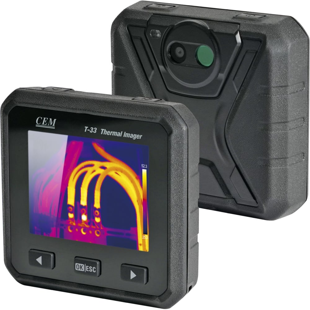 Тепловизор T-33 — портативная камера, применяемая для профилактического обслуживания, устранения неисправностей и верификации оборудования. Обладает функцией видеозаписи и воспроизведения видео. Тепловые изображения и видео объекта можно сохранить на micro SD-карту с последующей передачей на ПК. Для просмотра сохраненных изображений можно воспользоваться приложением «Thermoview PRO» для Android или iOS, которое позволяет сделать анализ изображений и создать отчёт в формате PDF.