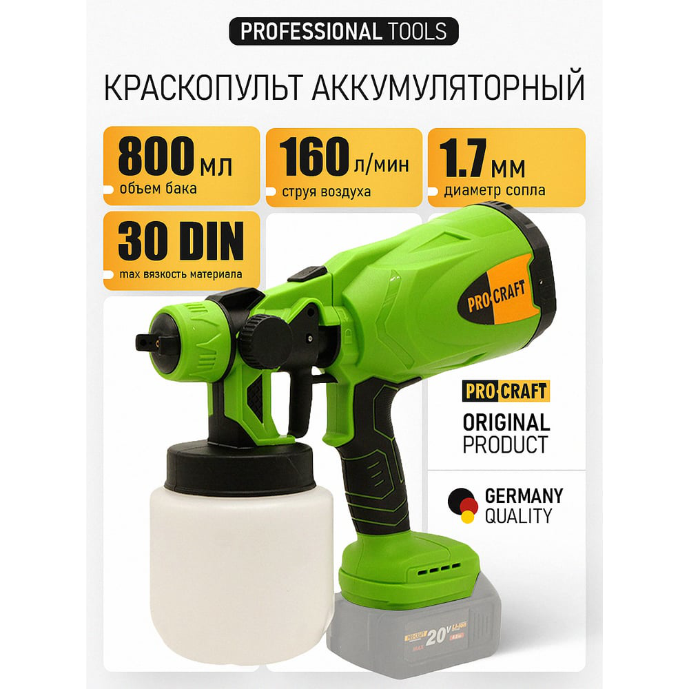 В нашем магазине «Главэлектрика» в Москве, вы можете приобрести товар: «Краскопульт аккумуляторный PROCRAFT 20В 0,8л, без АКБ и ЗУPSE20» с доставкой по г. Москва.