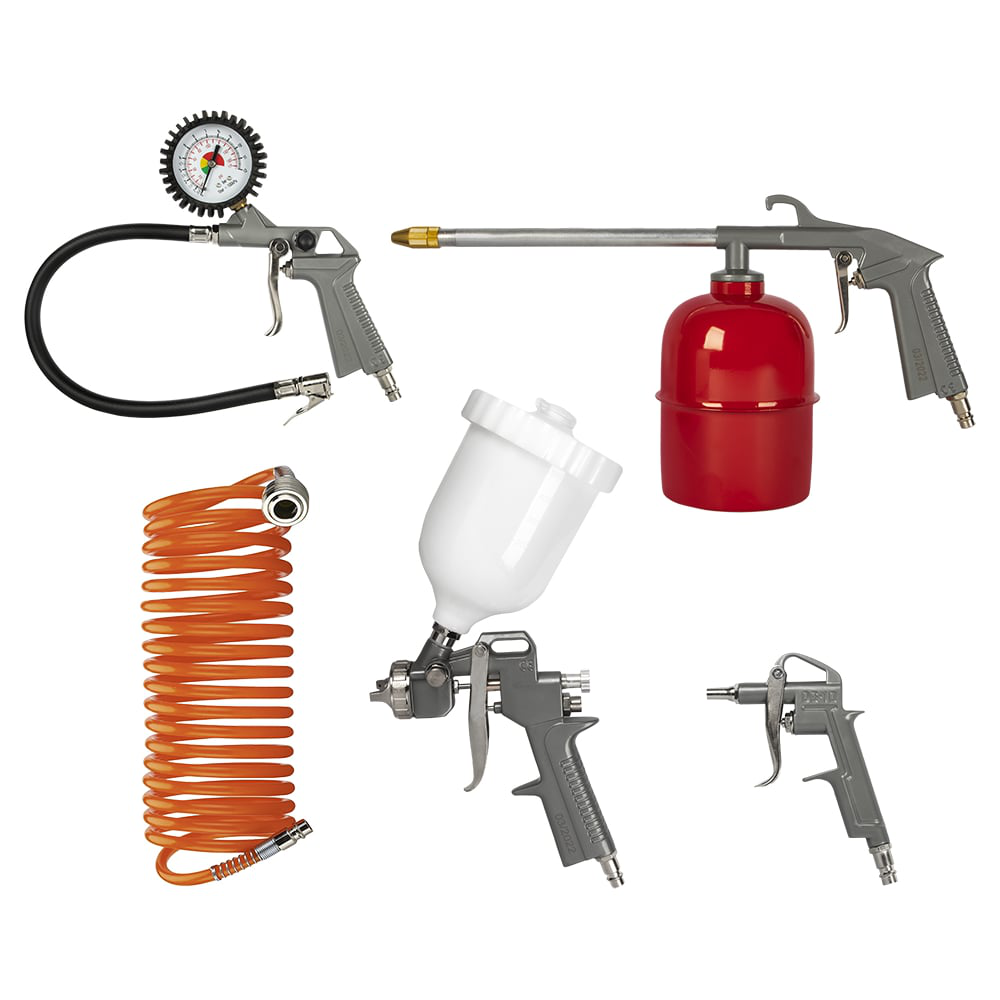 Набор пневмоинструментов QUATTRO ELEMENTI 771-138 отличается высоким качеством исполнения и, соответственно, долгим сроком службы. Спиральный пневмошланг длиной 5 м обеспечивает стабильную работу инструмента на удалении от питающего компрессора. В комплект поставки входят пистолет с манометром для накачивания шин, обдувочный пистолет для быстрого удаления грязи, краскопульт и пистолет для мовиля для равномерного и аккуратного покрытия поверхности спецсоставами.