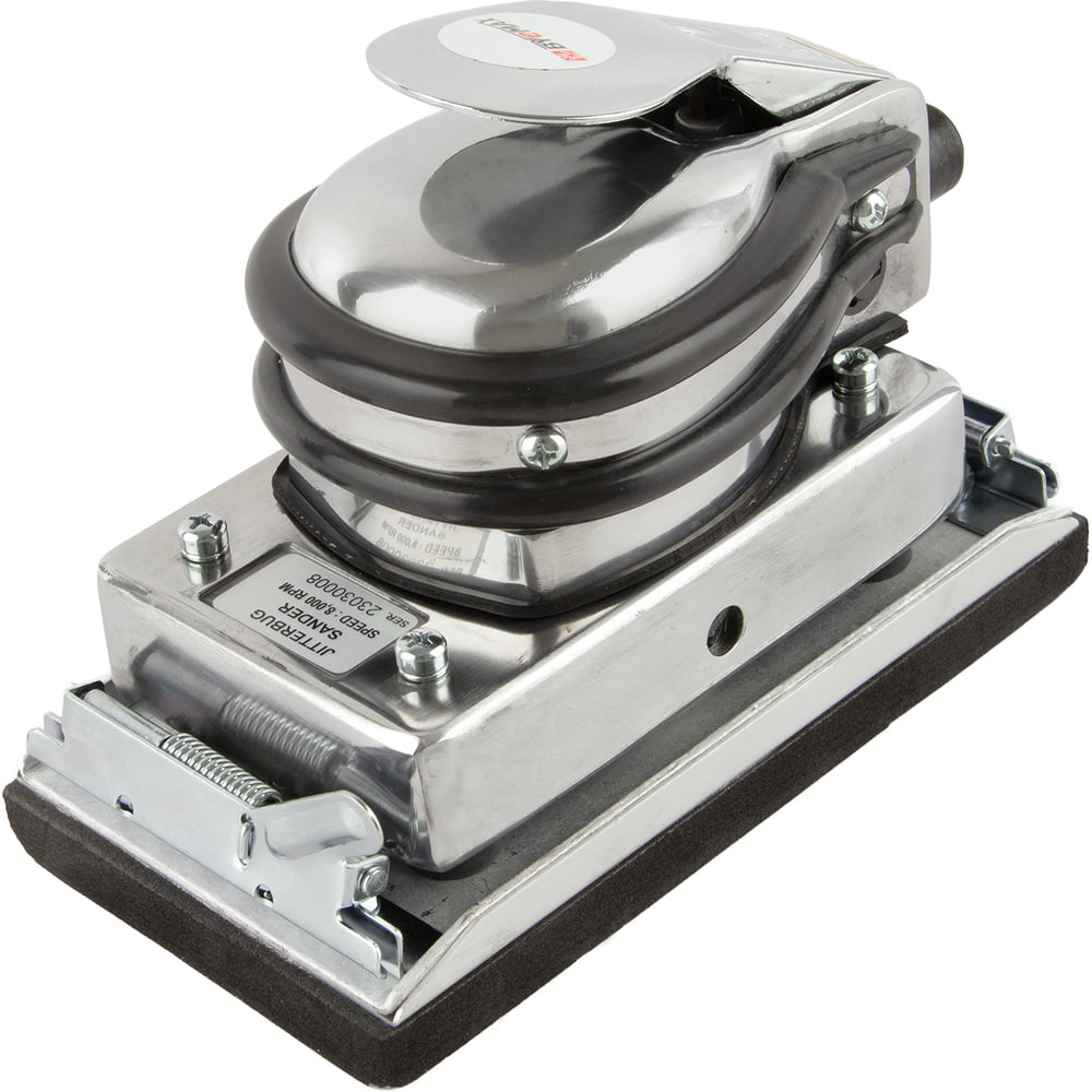Вибрационная пневмошлифмашина Byemax BG-0416 обеспечивает качественную обработку поверхностей. Благодаря зажимам достигается надежное крепление абразивных листов. Удобная прямоугольная форма инструмента позволяет шлифовать глубокие углы.