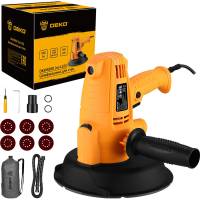 Шлифмашина для стен DEKO DKWS850предназначена для шлифовки больших поверхностей из древесины, пластмассы и металлических материалов, а также окрашенных поверхностей. Технические характеристики: Напряжение: 230 В Частота: 50 Гц Мощность: 850 Вт Число оборотов: 1500-3200 об/мин Диаметр шлифовального диска: 180 мм Диаметр опорной тарелки: 176 мм Подсветка: нет Резьба шпинделя: М14 Количество скоростей: 6 Тип шлифования: сухое Тип оснастки: лист шлифовальный Возможность подключения к пылесосу: да Длина кабеля: 3,5 м