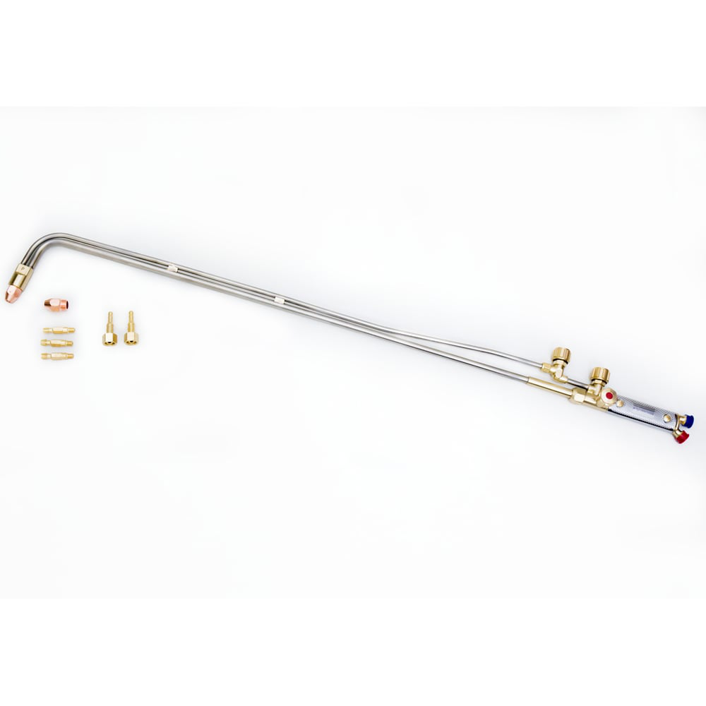 Газокислородный инжекторный резак предназначен для ручной газокислородной разделительной резки нелегированных и низколегированных, низкоуглеродистых сталей толщиной до 300 мм. В качестве горючего газа применяется пропан-бутан в смеси с кислородом Благодаря длине трубок работник всегда находится на безопасном расстоянии от зоны резки. Небольшой собственный вес облегчает удержание инструмента и позволяет работать дольше без усталости.