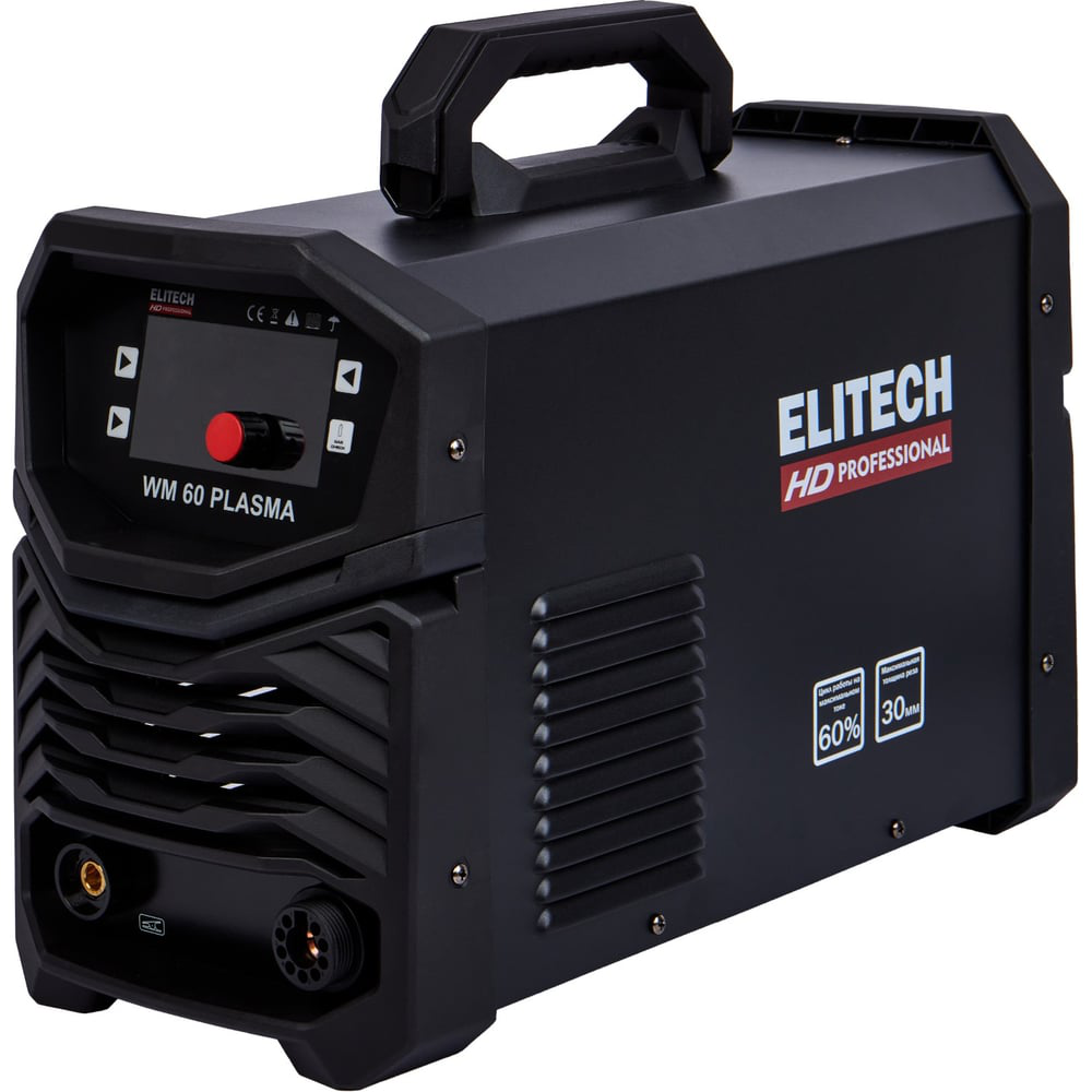 ELITECH «HD PROFESSIONAL» - серия инструментов для интенсивной работы, требующей высочайшей точности исполнения. Инструменты серии « HD PROFESSIONAL» сохраняют функциональность в экстремальных условиях окружающей среды. Они имеют максимальные степени защиты от перепадов температуры, влаги, пыли, перегрузок. Отличаются высокой ремонтопригодностью и высоким ресурсом. Созданы для профессионалов и для экстремальных условий.Инвертор воздушно-плазменной резки со сжатым воздухом ELITECH HD WM 60 PLASMA мощностью 6 кВт, предназначен для быстрого и качественного реза на глубину до 30 мм без деформации стали, алюминия, меди, нержавеющей стали, титана и его сплавов.
