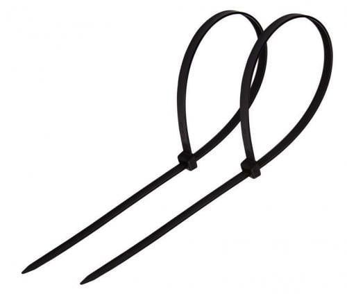 Хомут-стяжка представляет собой гибкую, но прочную нейлоновую полоску и применяется как для простого соединения проводов в пучки, так и для проведения электромонтажных работ в структурированных кабельных системах. Главным его достоинством является используемый в нем материал. Это полиамид-66 – конструкционный материал, отличающийся высокой механической прочностью и высокой твердостью. Его прочность при растяжении составляет не менее 50 МПа, а модуль упругости при растяжении варьирует в диапазоне 8000-11000 МПа. Плюс к этому он отличается высокими электроизоляционными свойствами.Представленный нейлоновый хомут, иначе называемый кабельная стяжка, имеет черный цвет. Что обусловлено применяемыми в нём модификаторами и наполнителями. Которые, в свою очередь, обеспечивают такие его свойства как: