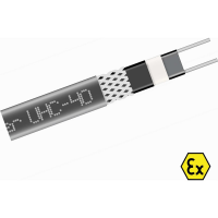 Саморегулирующийся нагревательный кабель параллельного типа универсального назначения для защиты от замерзания и поддержания заданной температуры трубопроводов и резервуаров, не подвергаемых пропарке, в том числе во взрывоопасных зонах, а также для обогрева различных элементов кровли и водосточных систем в регионах Крайнего Севера и в регионах с частыми переходами температур через 0⁰С.UHC–40 - это ленточный электрический нагреватель с параллельными проводниками. Полупроводящая саморегулирующаяся матрица наносится на лужёные оловом медные шины (1,0 мм²), состоящие из большого количества скрученных проволок. Тепловыделяющим элементом нагревательного кабеля является сама матрица, меняющая тепловыделение в зависимости от температуры окружающей среды.Два слоя внутренней изоляции, нанесенной на матрицу, обеспечивают диэлектрическую стойкость, влагоустойчивость, защиту от ударных нагрузок и истирания, а так же защиту от химического воздействия для матрицы. Первый слой внутренней изоляции изготовлен по уникальной запатентованной технологии методом совместной экструзии с матрицей на токопроводящие жилы и составляет с ней единое целое.Кабель защищен экраном из проволок, который обеспечивает механическую защиту тепловыделяющей матрицы и обеспечивает надежное заземление по всей длине кабеля.Внешняя изоляция из модифицированного полиолефина.