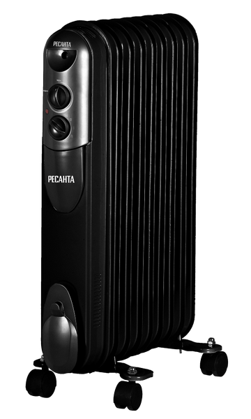 Масляный радиатор РЕСАНТА ОМПТ-9НЧ в стильном черном корпусе подходит для обогрева жилых и нежилых помещений площадью до 25 кв. м. Благодаря многоступенчатой регулировке режимов работы вы сможете точно настроить комфортную температуру в комнате. Модель РЕСАНТА ОМПТ-9НЧ окрашена в черный цвет методом напыления. Порошковая покраска металлического корпуса обеспечивает стойкое полимерное покрытие, устойчивое к нагреву. Корпус состоит из 9 секций, в качестве теплоносителя используется минеральное масло. Суммарная тепловая мощность – 2000 Вт. Доступны 3 режима работы: 800 Вт, 1200 Вт или 2000 Вт. Терморегулятор позволяет настраивать температуру с высокой точностью. Он будет поддерживать заданные параметры автоматически. Масляный радиатор рассчитан на непрерывную работу и снабжен системой защиты от перегрева. Вес прибора 6,6 кг, для удобства перемещения обогреватель снабжен колесиками, ручкой и кронштейном намотки кабеля с фиксатором для вилки.