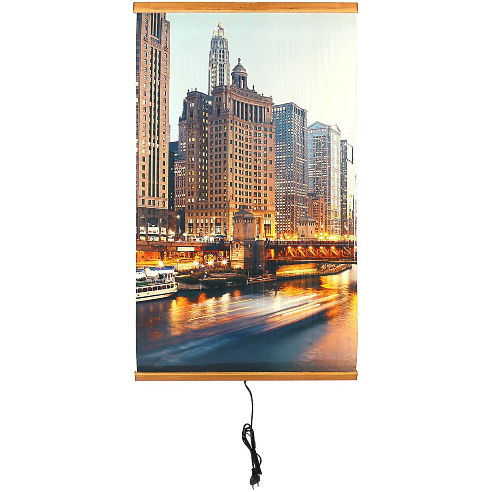 Инфракрасный гибкий настенный обогреватель для квартиры и дачи Домашний Очаг Ночной город ИКОДО-НГ предназначен для дополнительного обогрева помещений в холодное время года. Он не сушит воздух и не сжигает кислород. Обогреватель-картина с рисунком не только подарит тепло и уют дому, но и украсит его. ИК волны аналогичны солнечным лучам и воспринимаются телом человека как приятное тепло, грея мягко и не обжигая. Прибор отлично подойдет для использования на даче, балконе, в квартире, особенно в подростковых комнатах в стиле лофт. Он идеален для помещений площадью до 15 кв.м. Пленочный обогреватель-картина закрепляется на стену при помощи дюбеля и шурупа (входят в комплект).