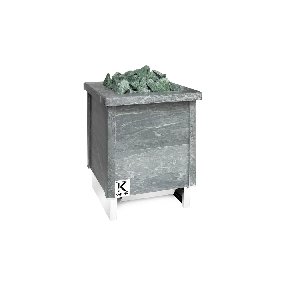 Электрическая печь KARINA Quadro 15 Талькохлорит – это электрокаменка, облицованная натуральным камнем со всех сторон, и обладающая мощностью оптимальной для коммерческих саун объемом до 24 м3.Талькохлорит эстетично смотрится в любом интерьере и обладает множеством лечебных свойств. При нагреве он выделяет с паром витамин D полезный для костной системы человека. Талькохлорит способствует улучшению обмена веществ и общему укреплению иммунитета. Кроме того, минерал улучшает теплообмен в парильном помещении.Емкость отсека для камней составляет 60 кг.Для работы электропечи понадобится сеть с напряжением 380 В.Нагревательным элементом в печке является ТЭН из высококачественной нержавеющей стали, который имеет повышенную электробезопасность и обладает большой тепловой инерцией. Диаметр нагревательного элемента составляет 13 мм. Подобные нагреватели нормально переносят попадание влаги. Это позволяет устанавливать электрическую каменку как в бани с сухим паром, так и в парные с паром повышенной влажности.На камни, находящиеся в отсеке, можно лить воду, благодаря особой конструкции печи и нагревательному элементу.У представленной модели предусмотрен напольный монтаж.Печь не укомплектована выносным пультом управления, его необходимо приобрести отдельно.