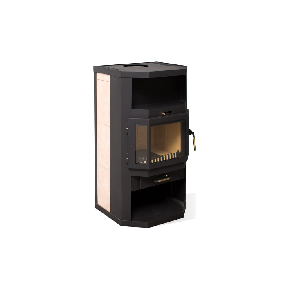 Классическая пристенная печь с панорамным обзором. Идеально подходит для обогрева помещения площадью 45-90 м2. Призматическая дверка из трех стекол высотой 330 мм. В отделке боковых поверхностей используется керамическая плитка. Размер поленьев 30-50 см. Подсоединение к дымоходу сверху или сзади.