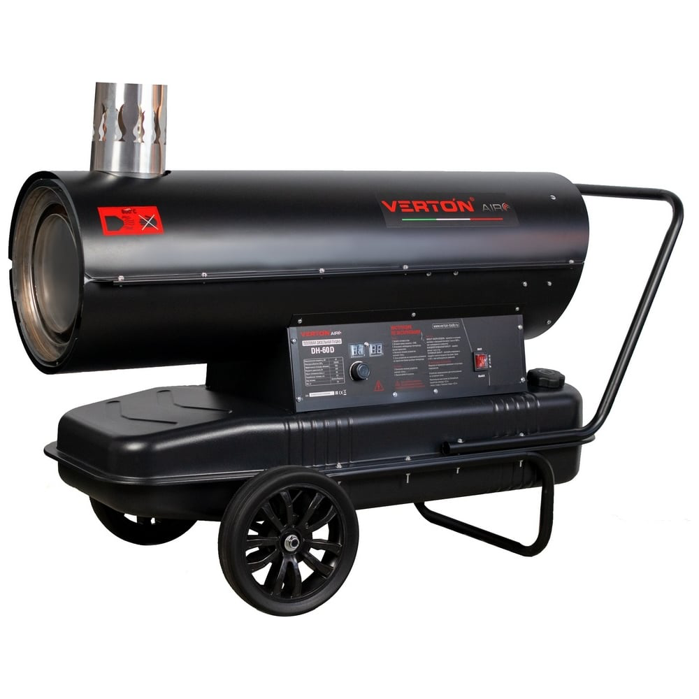 Дизельная пушка VERTON air dh-60d (60квт, 950м3/ч3. 5л/ч ,непрямой нагрев, дисплей, манометр, дизель/керосин) 01.12775.13890 - эффективное, компактное и безопасное оборудование для поддержания необходимой температуры помещений, где постоянно находятся люди. Благодаря возможности удаления продуктов сгорания, дизельные пушки непрямого нагрева широко применяются для жилых и подсобных помещений, а также приобретаются для частных домов, дач и гаражей.