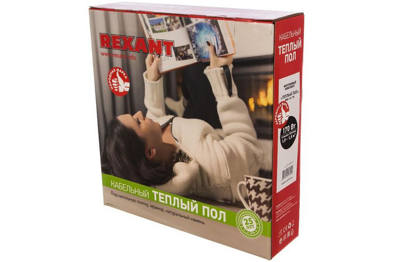 Комплект кабельного тёплого пола REXANT Slim предназначен для обогрева разных помещений и работает от бытовой электросети с напряжением 220–240 В. В его основе лежит тонкий кабель с удельной мощностью 18 Вт/м, который укладывается непосредственно под напольное покрытие без необходимости использования бетонной стяжки. Чтобы обеспечить равномерное распределение тепла, рекомендуется соблюдать расстояние между витками не более 15 см. Минимальный радиус изгиба нагревательного кабеля составляет 3 см. Тепловыделяющие жилы защищены фторопластовой изоляцией, а дополнительная оплётка выполнена из медных проводов.