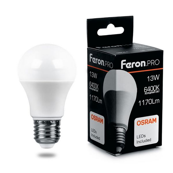 Лампа светодиодная Feron.Pro A60 LB-1013 Шар E27 13W 6400K, 38034 - это надежное и энергоэффективное решение для освещения вашего дома или офисного пространства.