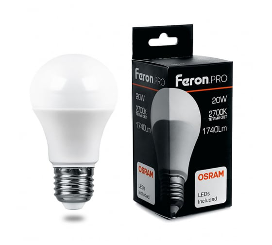Лампа светодиодная Feron.Pro A60 LB-1020 Шар E27 20W 2700K, 38041 – это качественное и энергоэффективное осветительное устройство, предназначенное для использования в домашних условиях.