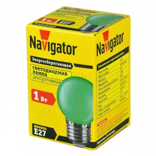 Navigator NLL-G45-1 – светодиодная энергосберегающая лампа декоративного освещения. Колба лампы выполнена в форме шара. Поверхность колбы матовая цветная. Форма лампы/колбы Шарообразная (тип G)Цоколь E27