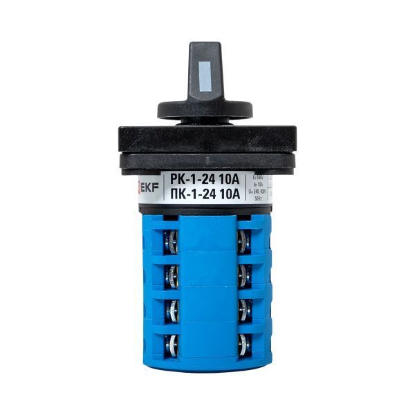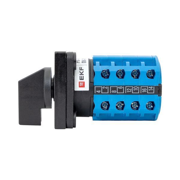 Кулачковые переключатели ПК EKF PROxima представляют собой механические коммутационные аппараты. Рассчитаны на применение в цепях переменного тока номинальным напряжением до 400 В и частотой 50/60 Гц. Благодаря повышенному содержанию серебра в контактах достигается их пониженное переходное сопротивление и повышенная устойчивость к воздействию внешней среды. Выпускается несколько исполнений кулачковых переключателей: • ПК-1 – стандартный кулачковый переключатель с различными схемами коммутации и разным количеством полюсов; • ПК-2 – трехфазный кулачковый переключатель с усовершенствованной контактной группой (выключатель нагрузки); • ПК-3 – трехфазный кулачковый переключатель в защитном боксе IP 54 (выключатель нагрузки). Переключатели ПК-1 и ПК-2 выпускаются с передним креплением. Устанавливаются на переднюю панель щитового оборудования, пульт управления и т. п. Переключатели ПК-3 с задним креплением устанавливаются на монтажную панель.