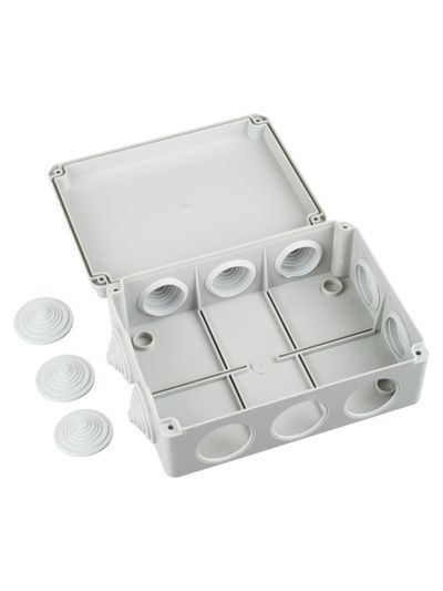 В нашем магазине «Главэлектрика» в Москве, вы можете приобрести товар: «Коробка распаячная КМ41243 для открытой проводки безгалогенная (HF) 190х140х70мм IP44 10 гермовводов серая IEK» с доставкой по г. Москва.