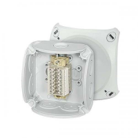 RK 0207 T - Коробка ответвительная с рядными клеммами, пломбируемая, для внутренней, или защищеной установки, размер 93х93х62 мм, 7 мембранных вводов (6-15 мм) по периметру коробки и 1 мембранный ввод в основании (6-13 мм), петли внешнего крепления и поводок крышки в комплекте, 7 клемм 0,5-2,5 кв.мм (f/sol) кв.мм. Возможна установка кабельных вводов АКМ 20, цвет серый, материал полипропилен, IP66