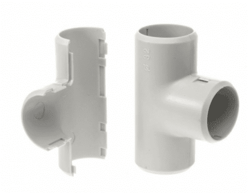 Аксессуары применяют при монтаже жёстких или гофрированных труб из пластика одного диаметра, что позволяет выполнить более эстетичный и качественный монтаж. Материал изготовления является безгалогенным и не содержит вредных для здоровья веществ. Тройник разборный - предназначен для соединения гофрированных труб или гладких труб из пластика, образуя Т-образное ответвление. Состоит из двух частей соединяющихся друг с другом. Благодаря разъёмному корпусу, имеет возможность установки на уже смонтированную трассу. Материал - АБС-пластик. Цветовое исполнение - RAL 7035 (серый).