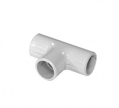 Тройник открывающийся TIG предназначен для Т-образного соединения трёх гладких жестких труб. Состоит из двух одинаковых частей, соединяющихся друг с другом защелкиванием. - Материал: ПВХ - Цвет: RAL 7035 - Горючесть: самозатухающий