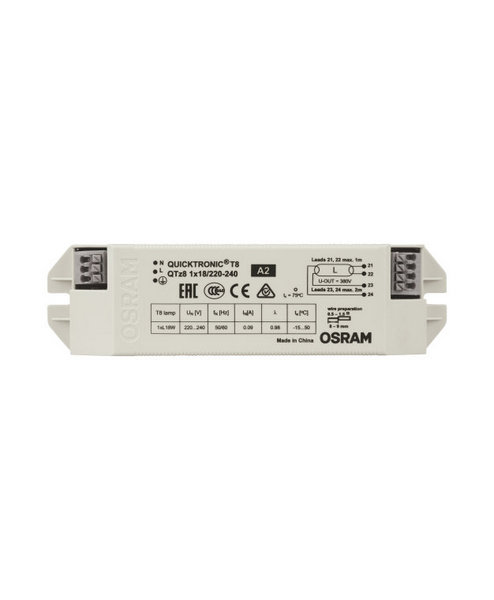 ЭПРА Osram QTZ8 1x18 - это электронный пусковой регулятор для использования с лампами T8. Он обеспечивает стабильное питание и защиту от перегрузок для лампы, продлевая ее срок службы. Этот продукт от компании Osram обеспечивает высокую эффективность работы лампы, а также минимизирует мерцание света при включении. Установка данного устройства позволит вам создать комфортное и равномерное освещение в помещении.