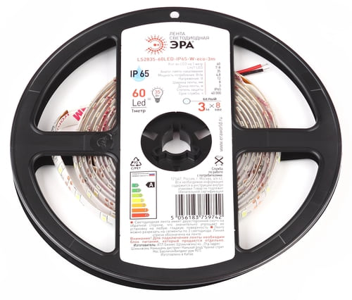 Светодиодная лента Эра IP65 12V 4,8Вт/м 6500К LS283560LED-IP65-W-eco-3m (3м), Б0035588 - надежный и энергоэффективный источник освещения, который подойдет для широкого спектра задач - от декоративного освещения интерьера до уличного освещения.