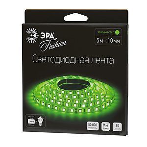 Светодиодная лента Эра LS5050-60LED-IP20-G-5m 14,4W/m 12V имеет длину 5 метров и оснащена 60 светодиодами на каждый метр. Всего в ленте содержится 300 ярких зеленых светодиодов, которые обеспечат равномерное и интенсивное освещение.