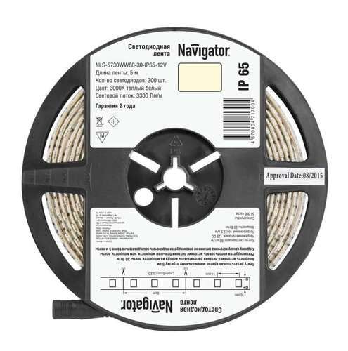 Светодиодная лента Navigator IP65 12V 30Вт/м 3000К NLS-5730WW60-30 R5, 71700 - это высококачественный и многофункциональный световой источник, который предлагает широкий спектр возможностей для освещения и декорирования различных пространств.