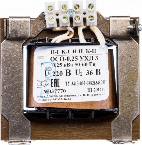 Трансформатор ОСО предназначен для питания местного или ремонтного освещения, а также для подключения переносных светильников, инструмента и оборудования, работающих в сети переменного тока с напряжением 36 В.Особенности