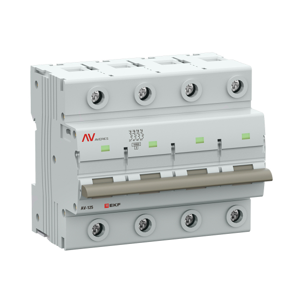 Выключатели автоматические AV-125 EKF AVERES являются механическими коммутационными аппаратами и применяются для оперативных включений и отключений в электрических сетях переменного тока, а также защиты от токов перегрузки и коротких замыканий в жилых и общественных сооружениях. Автоматические выключатели серии AVERES соответствуют ГОСТ IEC 60947-2. Особенностью данной серии автоматических выключателей является усовершенствованная конструкция. Выключатели автоматические обладают механизмом мгновенной коммутации. Благодаря данному механизму силовые контакты коммутируются мгновенно, независимо от скорости взведения рычага автоматического выключателя. Это обеспечивает меньший износ контактов, и, как следствие, меньшие тепловые потери в контактной группе и меньшее тепловыделение автоматических выключателей AV-125 EKF AVERES.