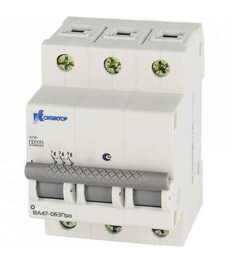 Выключатели ВА47-063Про предназначены для проведения тока в нормальном режиме и отключения тока при коротких замыканиях, перегрузках, а также для нечастых оперативных включений и отключений электрических цепей и рассчитаны для эксплуатации в электроустано