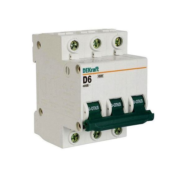 В целом, автоматический выключатель DEKraft ВА-101 3P 6А (D) 4.5кА, 11124DEK - это надежное и удобное устройство, которое обеспечивает безопасность и защиту электрических систем от перегрузок и коротких замыканий.