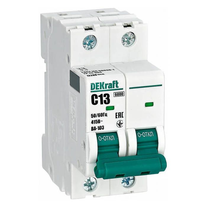 DEKraft ВА-103 2P 13А (C) 6кА, 12288DEK - надежное и безопасное устройство, которое идеально подходит для использования в электрических системах различных типов, обеспечивая защиту и комфорт.