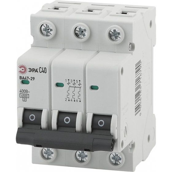 Автоматический выключатель ЭРА ВА47-29 3P 40А (C) оснащен функцией автоматического отключения электрической сети при возникновении перегрузки или короткого замыкания, что позволяет предотвратить повреждение электрооборудования и обеспечить безопасность работы системы.
